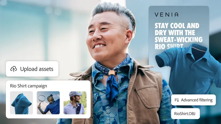<!DOCTYPE html><html> <head> <title>Adobe Experience Manager Assets | Digital Asset Management</title> <link rel="canonical" href="https://business.adobe.com/products/experience-manager/assets.html"> <meta name="description" content="Enable AI-powered digital asset management to streamline production, optimize delivery, and ensure compliance with Adobe Experience Manager Assets."> <meta name="keywords" content="AEM assets, digital asset management"> <meta property="og:title" content="Adobe Experience Manager Assets | Digital Asset Management"> <meta property="og:description" content="Enable AI-powered digital asset management to streamline production, optimize delivery, and ensure compliance with Adobe Experience Manager Assets."> <meta property="og:image" content="https://business.adobe.com/products/experience-manager/media_1b3a0c842efd5f1688976c2cc2402ee88558b410b.png?width=1200&#x26;format=pjpg&#x26;optimize=medium"> <meta property="og:image:secure_url" content="https://business.adobe.com/products/experience-manager/media_1b3a0c842efd5f1688976c2cc2402ee88558b410b.png?width=1200&#x26;format=pjpg&#x26;optimize=medium"> <meta property="og:image:alt" content="https://main--bacom--adobecom.hlx.page/assets/videos/products/experience-manager/assets/media_1e92ddd07c97b1831e42bff50c121bfa7210ff5a8.mp4#_autoplay1 | Happy customer with a variety of campaign assets and a shirt ad"> <meta name="twitter:card" content="summary_large_image"> <meta name="twitter:title" content="Adobe Experience Manager Assets | Digital Asset Management"> <meta name="twitter:description" content="Enable AI-powered digital asset management to streamline production, optimize delivery, and ensure compliance with Adobe Experience Manager Assets."> <meta name="twitter:image" content="https://business.adobe.com/products/experience-manager/media_1b3a0c842efd5f1688976c2cc2402ee88558b410b.png?width=1200&#x26;format=pjpg&#x26;optimize=medium"> <meta name="target" content="postLCP"> <meta name="gnav-source" content="https://main--bacom--adobecom.hlx.page/gnav/localnav-aem-assets"> <meta name="footer-promo-tag" content="products/aem-assets"> <meta name="header" content="global-navigation"> <meta name="footer" content="global-footer"> <meta name="mobile-gnav-v2" content="off"> <meta name="pageperf" content="on"> <meta name="pageperf-rate" content="50"> <meta name="primaryproductname" content="Experience Manager Assets"> <meta name="serp-content-type" content="product"> <meta name="publishdate" content="2024-11-13"> <meta name="viewport" content="width=device-width, initial-scale=1"> <link rel="preload" href="/styles/styles.css" as="style"> <script> const libs = (() => { const { hostname, search } = window.location; if (!['.hlx.', '.aem.', '.stage.', 'local'].some((i) => hostname.includes(i))) return '/libs'; const branch = new URLSearchParams(search).get('milolibs') || 'main'; if (branch === 'local') return 'http://localhost:6456/libs'; return branch.includes('--') ? `https://${branch}.aem.live/libs` : `https://${branch}--milo--adobecom.aem.live/libs`; })(); const miloStyles = document.createElement('link'); const miloUtils = document.createElement('link'); const miloDecorate = document.createElement('link'); miloStyles.setAttribute('as', 'style'); miloStyles.setAttribute('href', `${libs}/styles/styles.css`); [miloUtils, miloDecorate].forEach((tag) => { tag.setAttribute('crossorigin', 'true'); tag.setAttribute('as', 'script'); }) miloUtils.setAttribute('href', `${libs}/utils/utils.js`); miloDecorate.setAttribute('href', `${libs}/utils/decorate.js`); [miloStyles, miloUtils, miloDecorate].forEach((tag) => tag.setAttribute('rel', 'preload')); document.head.append(miloStyles, miloUtils, miloDecorate);</script> <script src="/scripts/scripts.js" type="module"></script> <style>body { display: none; }</style> <link rel="icon" href="data:,"> </head> <body> <header></header> <main> <div> <div class="breadcrumbs"> <div> <div> <ul> <li><a href="/">Home</a></li> <li><a href="/products/adobe-experience-cloud-products">Products</a></li> <li><a href="/products/experience-manager/adobe-experience-manager">Adobe Experience Manager</a></li> <li>Assets</li> </ul> </div> </div> </div> <div class="marquee large dark"> <div> <div data-valign="middle">#000</div> <div data-valign="middle">#000</div> <div data-valign="middle"> <picture> <source type="image/webp" srcset="./media_1cc3429148e8a07b9e84912dcbca9c820afa24954.png?width=2000&#x26;format=webply&#x26;optimize=medium" media="(min-width: 600px)"> <source type="image/webp" srcset="./media_1cc3429148e8a07b9e84912dcbca9c820afa24954.png?width=750&#x26;format=webply&#x26;optimize=medium"> <source type="image/png" srcset="./media_1cc3429148e8a07b9e84912dcbca9c820afa24954.png?width=2000&#x26;format=png&#x26;optimize=medium" media="(min-width: 600px)"> <img loading="lazy" alt="https://main--bacom--adobecom.hlx.page/assets/videos/products/experience-manager/assets/media_1e92ddd07c97b1831e42bff50c121bfa7210ff5a8.mp4#_autoplay1 | Happy customer with a variety of campaign assets and a shirt ad" src="./media_1cc3429148e8a07b9e84912dcbca9c820afa24954.png?width=750&#x26;format=png&#x26;optimize=medium" width="3840" height="1400"> </picture> </div> </div> <div> <div data-valign="middle"> <h1 id="adobe-experience-manager-assets">Adobe Experience Manager Assets</h1> <h2 id="an-ai-powered-dam-to-scale-modern-experiences">An AI-powered DAM to scale modern experiences.</h2> <p>Streamline content production and intelligently deliver rich media experiences when and where your customers want them. Adobe Experience Manager Assets is a customizable digital asset management system (DAM) that lets you easily discover, govern, and activate millions of assets so you can deliver and scale personalized experiences.</p> <p><em><a href="/fragments/products/modal/videos/experience-manager/assets#watch-video"><span class="icon icon-play"></span>Watch overview | Watch overview about Adobe Experience Manager Assets</a></em></p> </div> <div